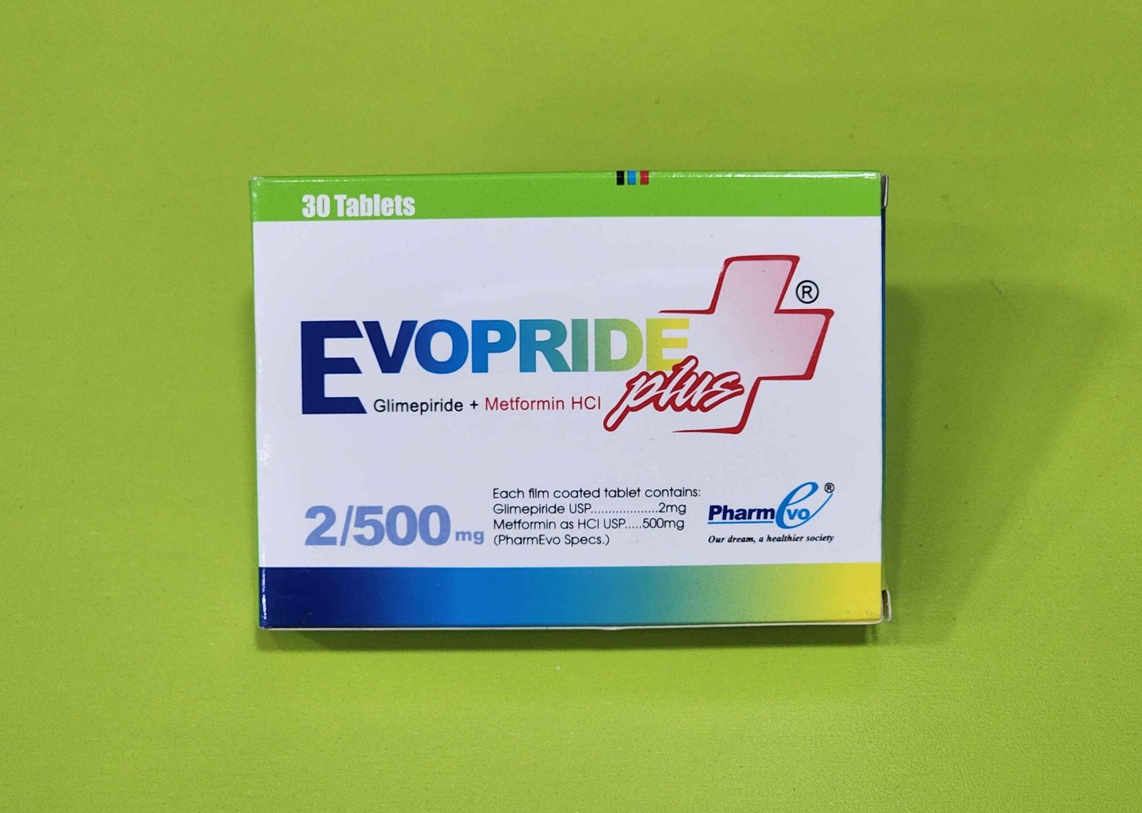 - Evopride Plus (Glimepiride + Metformin HCl) 2mg/500mg Tablets are indicated for the management of type 2 diabetes mellitus in adults.