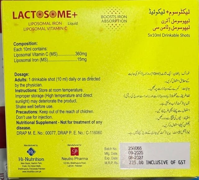 Lactosome Ampoules β Liposomal Iron with Vitamin C in Pakistan